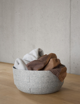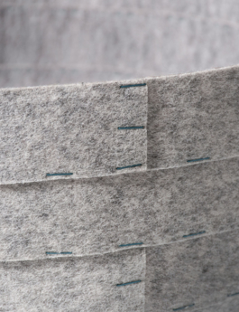 The stapled baskets are the result of a collaboration with Shigeki Fujishiro, as part of a series of baskets made from unconventional material, conceived for the gallery PLACE by method in Tokyo, Japan. We decided to use strips of cheap felt, usually used as protection when moving or painting and staple them together. It was important to me to keep the shape of the basket simple and coherent to let the material and technique speak.