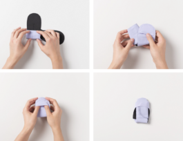 The special shape of the Ona pad avoids the extra bulk of push buttons or velcro, which are used in the current washable sanitary pads. Another detail that helps decreasing the bulkiness and making the pad as least noticeable as possible are three distinct creases that help the pad adapt to the shape of the body. The pad’s tongue wraps around the underwear and, with the aid of tension and silicone details, secures the pad in place.