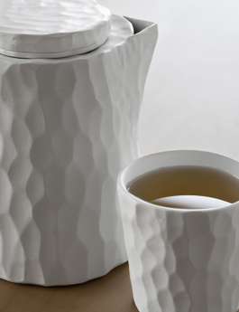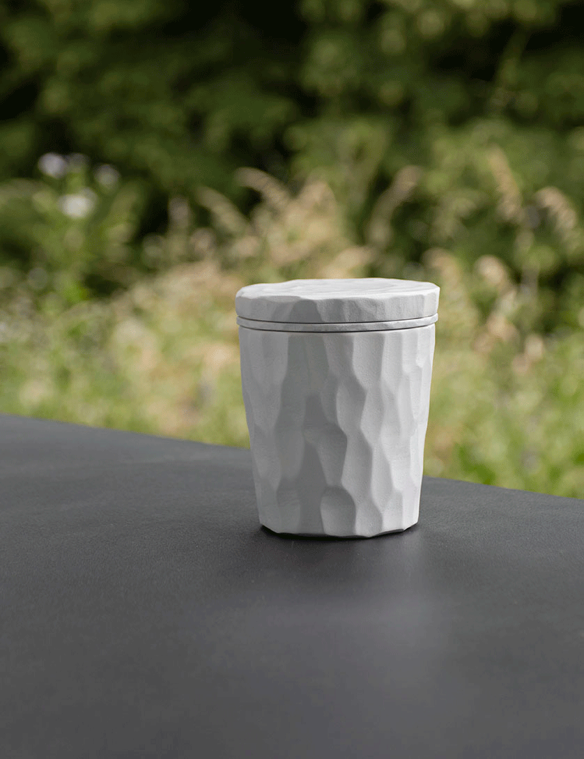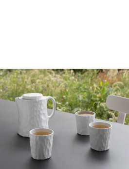 Playing with materiality, Tilia is a tea set reinterpreting woodcarving onto a new medium. The volumes are initially carved out of wood, then moulded to create slip casted ceramics. To complete the set, "Jardin des Monts", a small garden in Rossinière growing herbs for tea and cosmetics, kindly created a unique mix of herbs.