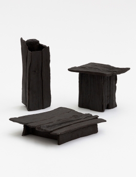“Ignis” perpetuates firewood, a beautiful yet ephemeral material into long-lasting objects by being translated into a new material, resulting in an experimental collection of casted ceramic objects. Using fire as a connecting and guiding element, the clay objects are fired with the ancient method of pit firing. Once fired, clay outlives wood. While fire obliterates the materiality of wood by turning it into ashes, it does the opposite to clay. The ashes additionally serve as component for the glaze in a second firing, closing the circle quite poetically.